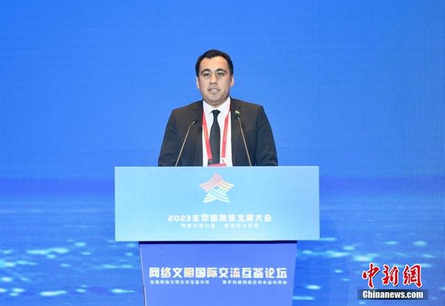 7月18日,2023年中國(guó)網(wǎng)絡(luò)文明大會(huì)網(wǎng)絡(luò)文明國(guó)際交流互鑒論壇在廈門(mén)舉辦。中外嘉賓圍繞加強(qiáng)網(wǎng)絡(luò)文明交流、互鑒、共存等話題展開(kāi)探討。圖為中國(guó)石油大學(xué)(北京)土庫(kù)曼斯坦籍來(lái)華留學(xué)生若賀曼作主題演講。中新社記者 王東明 攝